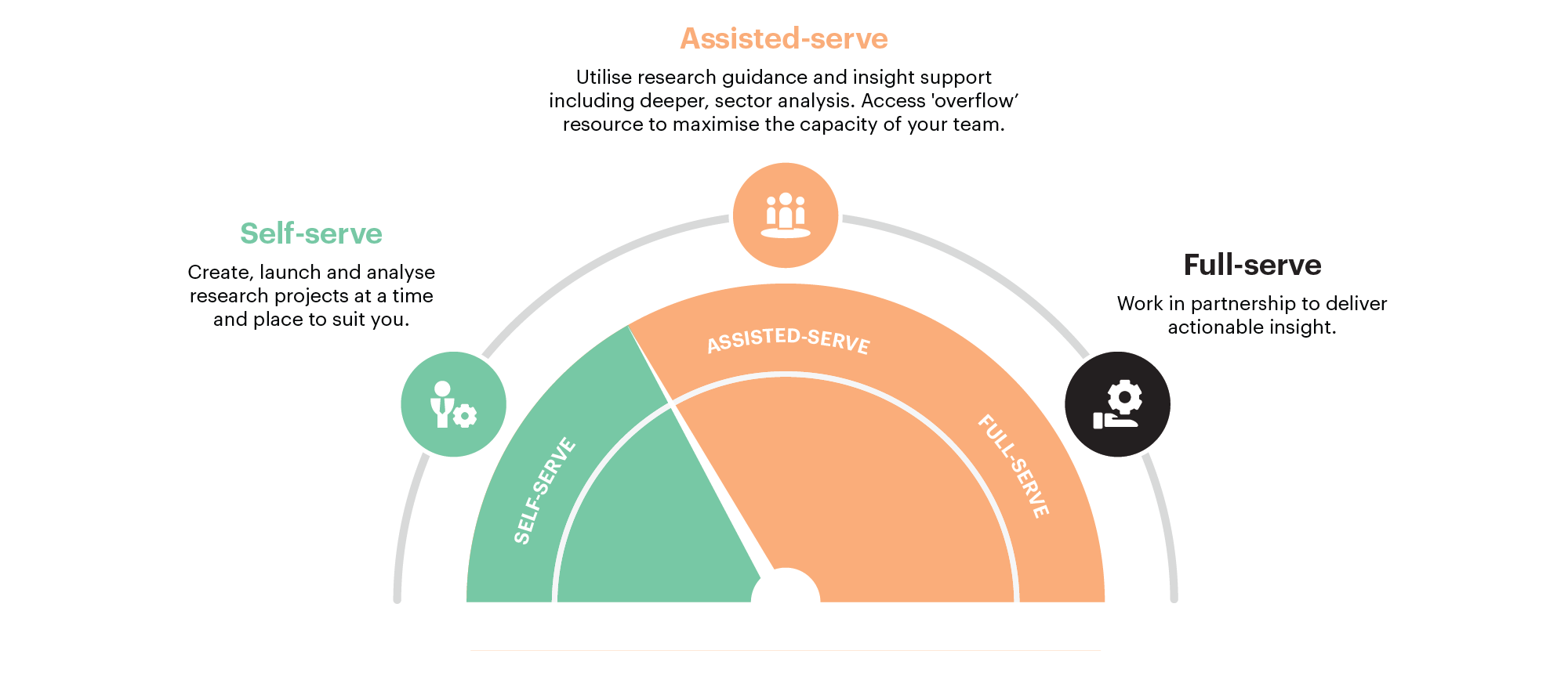 Choose which project elements should be Full, Assisted or Self-serve in line with your team’s available resource and budget.